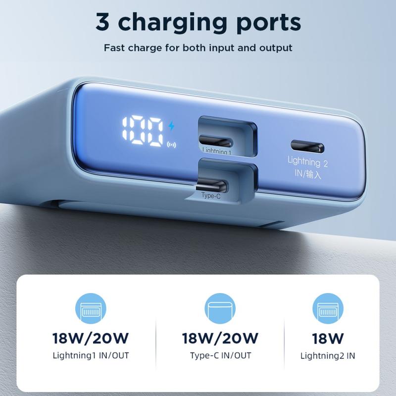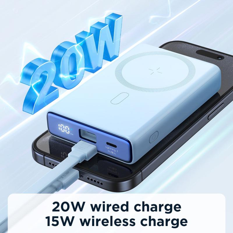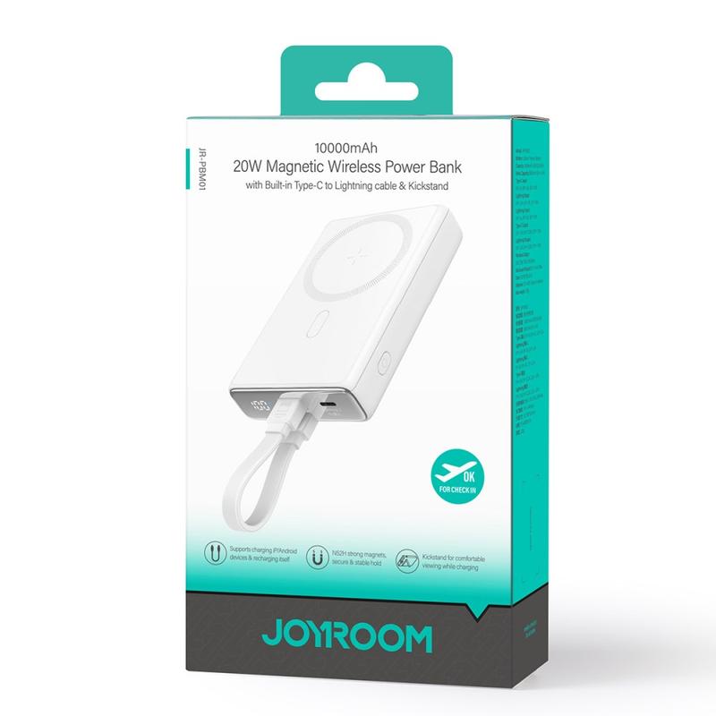 JOYROOM JR-PBM01 PD 20W 10000mAh Phone Power Bank Cargador magnético inalámbrico con cable incorporado / Kickstand - Blanco