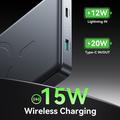 - Puertos de entrada duales: USB-C y Lightning para una recarga flexible