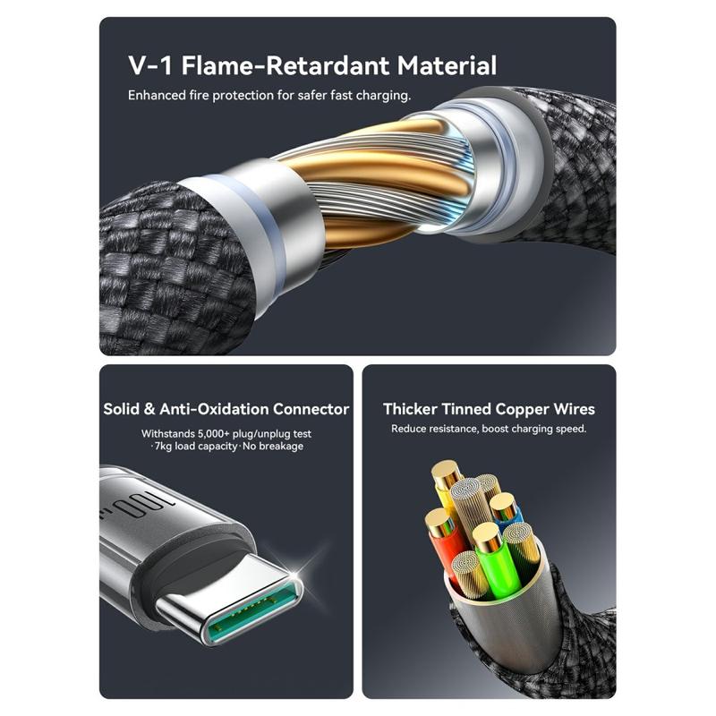 • Joyroom S-A57 Cable USB-C a USB-C doble - Carga rápida de 100 W con E-Marker, sincronización de datos de 480 Mbps, trenzado de nailon, atadura de cable incluida.