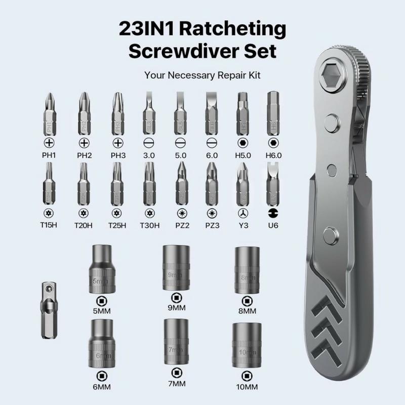- Juego de destornilladores y llaves de vaso 23 en 1