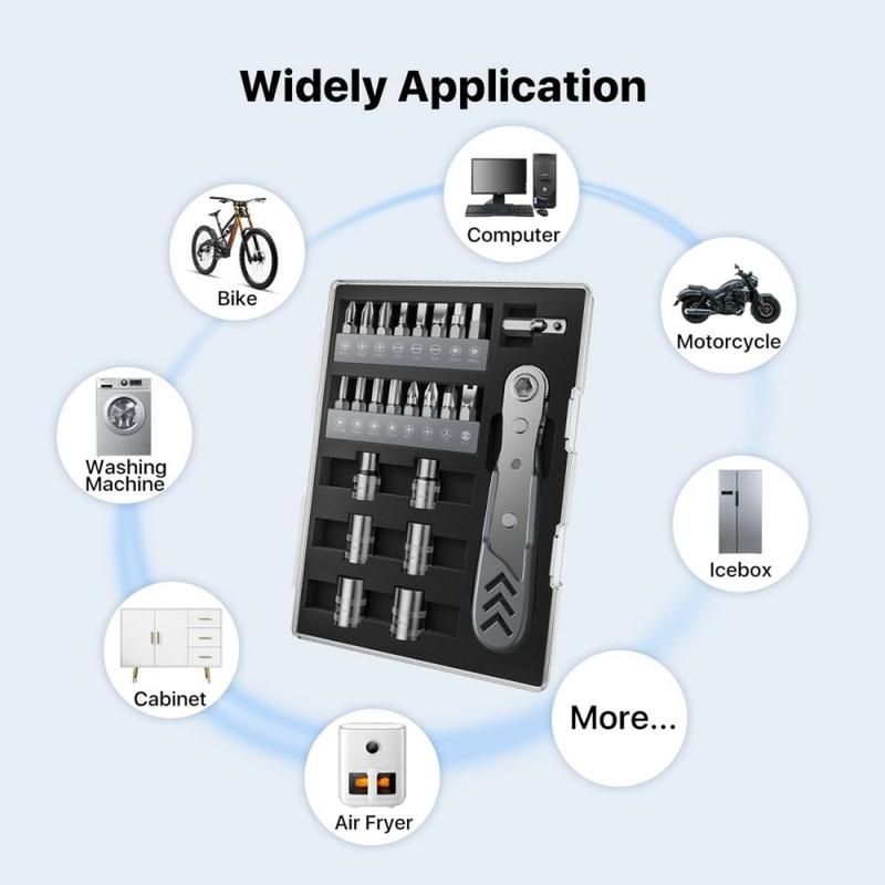 Es especialmente útil para personas que trabajan con electrónica, muebles, electrodomésticos, bicicletas o proyectos de bricolaje y desean un kit de herramientas compacto en lugar de varias herramientas separadas.