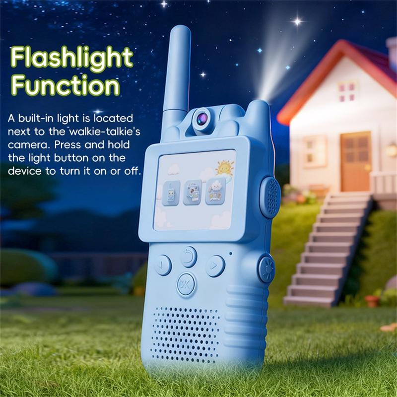 La cámara giratoria de 180 grados permite a los niños cambiar de ángulo más fácilmente y capturar diferentes perspectivas durante el juego. Sin necesidad de WiFi, datos móviles ni tarjeta SIM, los dispositivos permiten la comunicación directa en tiempo real para un uso sencillo y cómodo tanto en interiores como al aire libre. La linterna incorporada añade diversión y practicidad adicionales para jugar por la noche o para pequeñas aventuras, mientras que el almacenamiento de fotos permite a los niños guardar y revisar sus momentos favoritos.