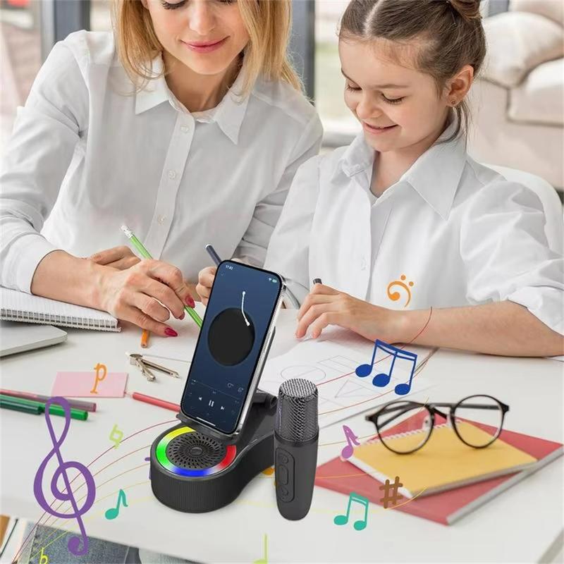 El K500 combina entretenimiento, practicidad y portabilidad en un único dispositivo compacto. Con dos micrófonos, un soporte giratorio para el teléfono, iluminación RGB y un banco de energía integrado, es la elección perfecta para los usuarios que quieren un altavoz todo en uno para cantar, transmitir y divertirse en cualquier lugar.