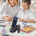 El soporte para teléfono integrado gira 360 grados y permite ajustar la altura, lo que garantiza el ángulo de visión perfecto para cantar, ver vídeos, hacer vlogging o transmitir en directo.