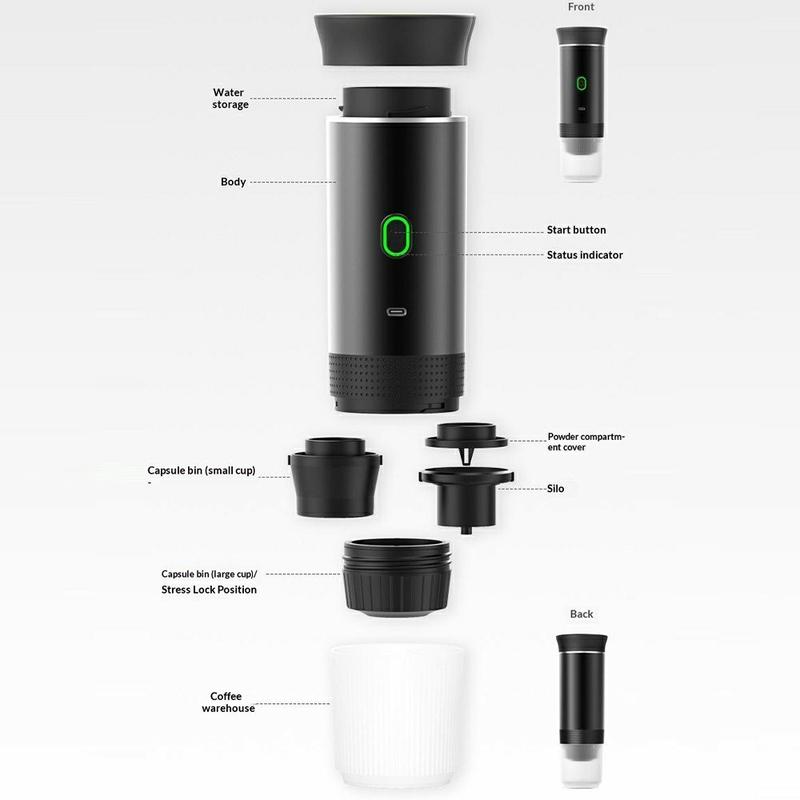 • KF-JN-02: cafetera eléctrica portátil 3 en 1 - Cafetera USB de 20 bares para cápsulas y café molido