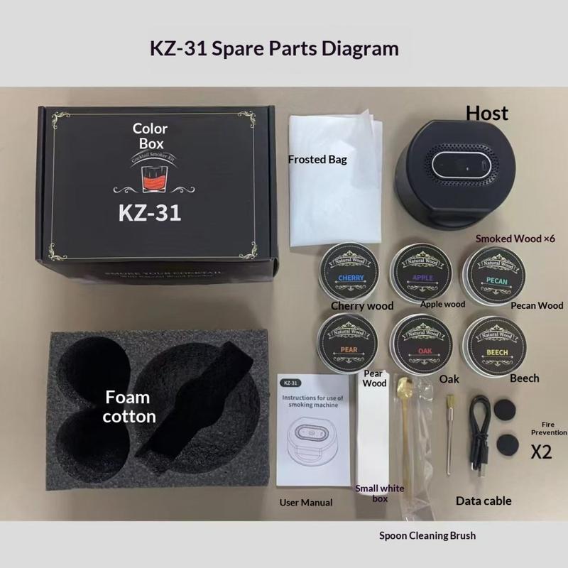 El KZ-31 ofrece una forma sencilla de crear bebidas ahumadas de primera calidad con resultados consistentes y fácil manejo. Con múltiples sabores de virutas de madera, un diseño recargable y un completo set de accesorios, es una excelente opción para cualquiera que quiera una experiencia profesional de coctelería en casa.