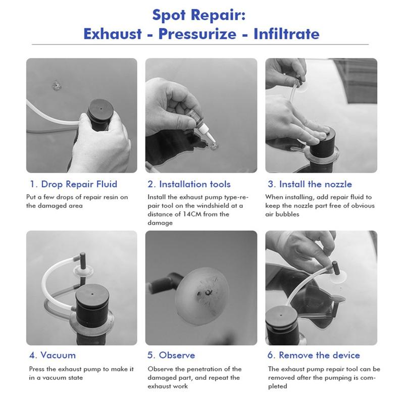 Kit de reparación de grietas en el parabrisas del coche con bomba de aire y herramienta de vacío