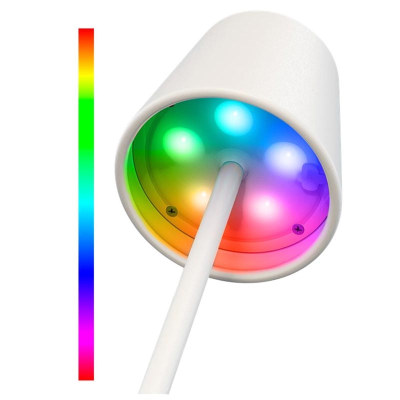 Si quieres una lámpara que se adapte a todas las situaciones, este modelo RGBW te ofrece: libertad inalámbrica, control táctil, atenuación infinita y luz blanca cálida y colorida en un diseño metálico duradero y estable. Es una forma fácil de mejorar tu ambiente, tanto en interiores como en exteriores, sin saturar tu espacio con cables.