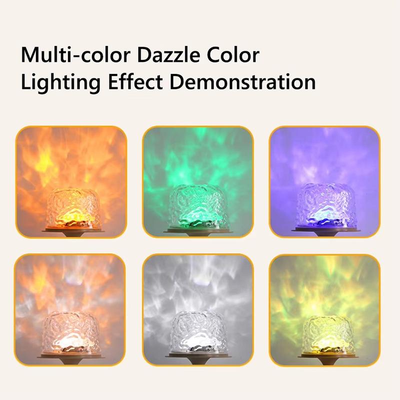 Las lámparas proyectoras Wave utilizan una difusión LED RGB reflejada para simular el movimiento de la luz sobre el agua, una técnica de iluminación utilizada a menudo en spas y espacios de meditación para promover la calma y aliviar el estrés.