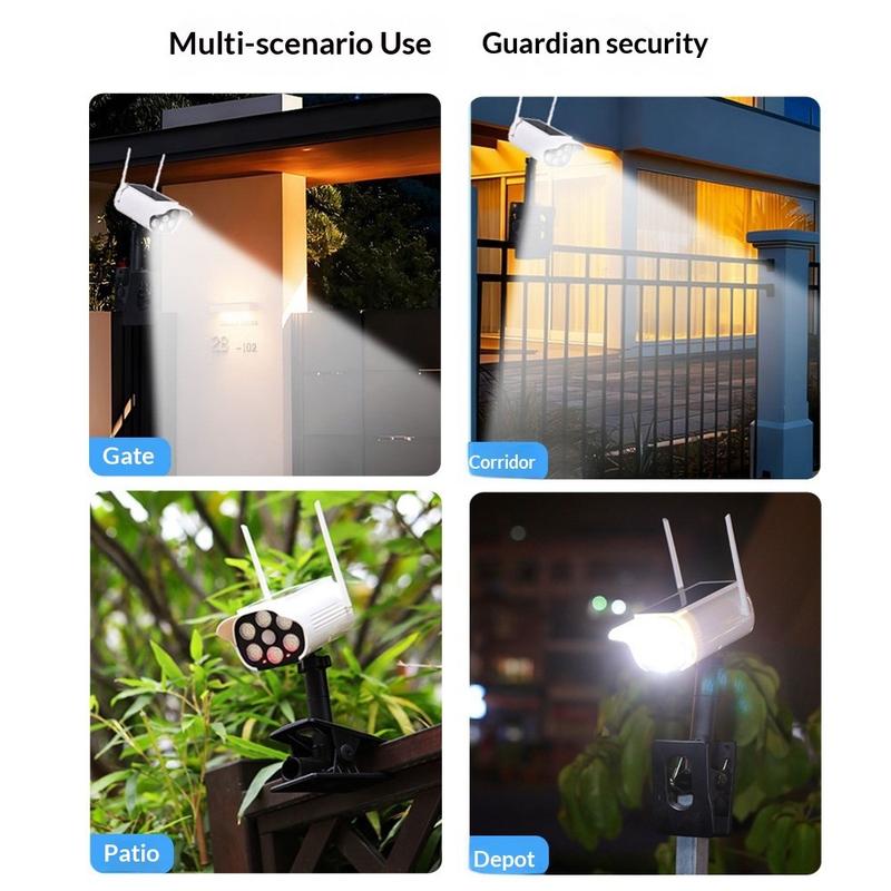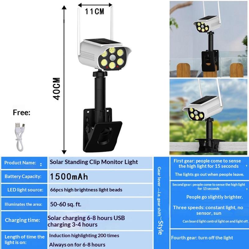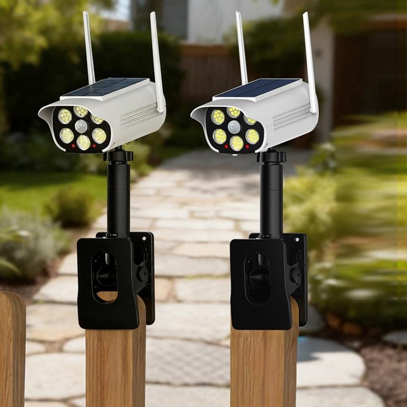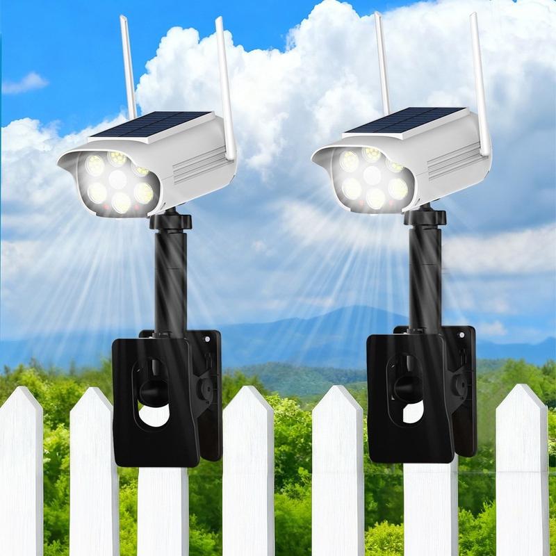 La luz solar con forma de cámara de seguridad simulada P43 es una lámpara LED para exteriores con sensor de movimiento, resistencia al agua IP44, 66 LED, una batería de 1500 mAh y control automático de la luz desde el atardecer hasta el amanecer. Con un diseño realista de cámara falsa, posicionamiento ajustable en 360º y un soporte de clip flexible, es una solución práctica de iluminación solar para jardines, entradas, balcones, vallas y caminos de acceso.