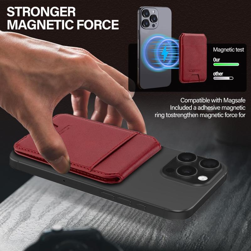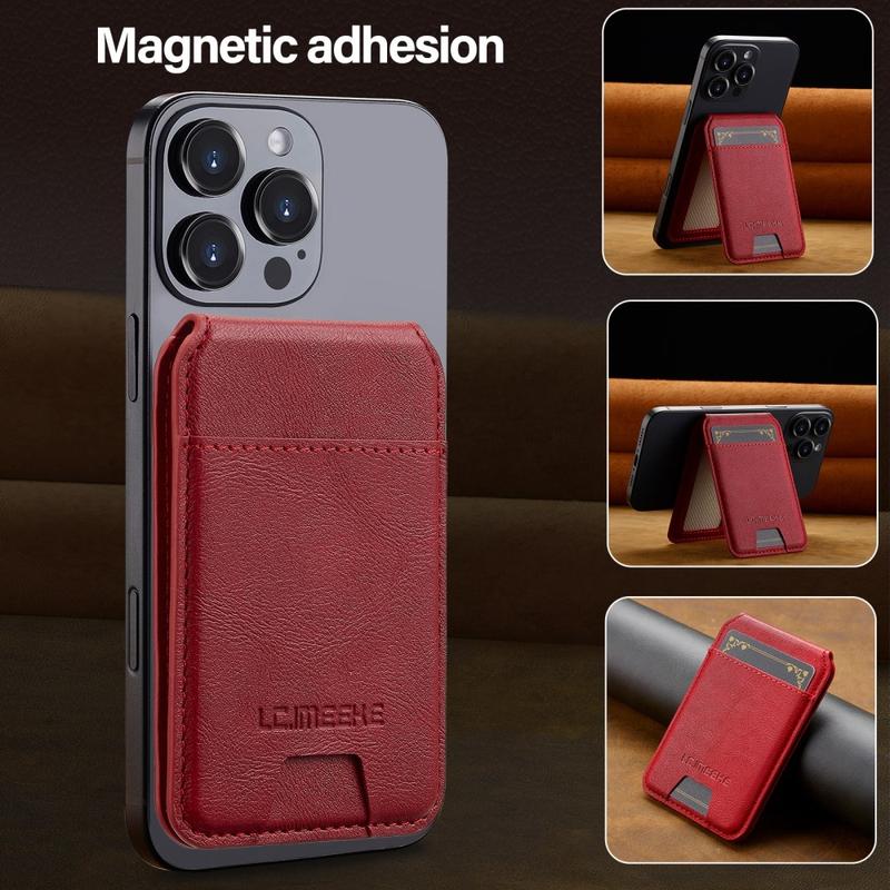 LC.IMEEKE Tarjetero magnético con bloqueo RFID y soporte - Rojo