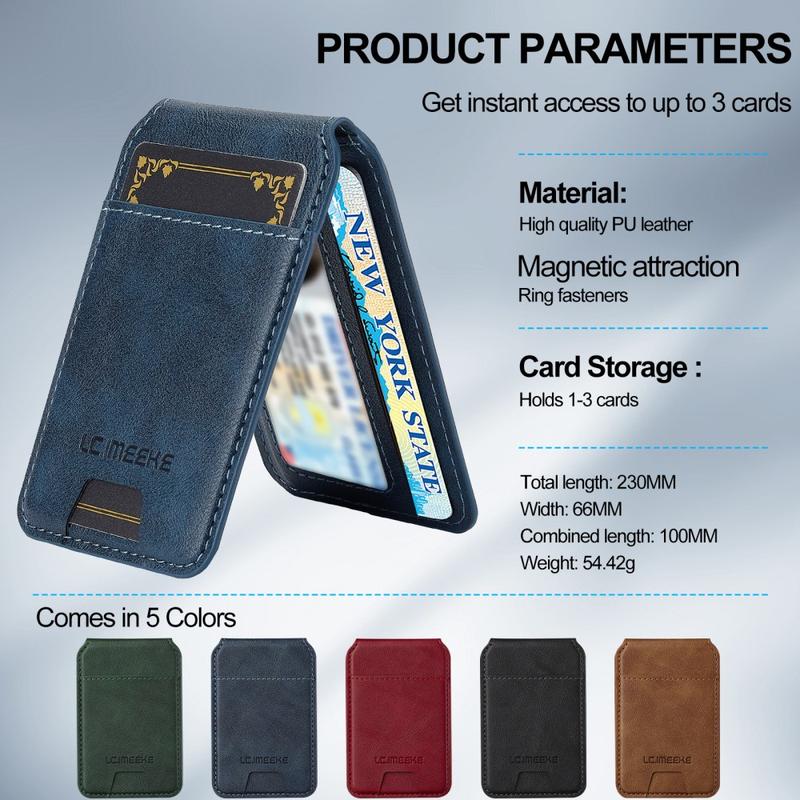El tarjetero magnético LC.IMEEKE es un accesorio para teléfono fino y elegante que combina el almacenamiento seguro de tarjetas con la comodidad cotidiana. Diseñado para acoplarse magnéticamente a teléfonos compatibles, mantiene tus tarjetas esenciales cerca a la vez que mantiene un perfil ligero. Con un soporte ajustable para tener las manos libres y protección RFID integrada, esta cartera es ideal para el uso diario, ya sea en el trabajo, de viaje o en casa.