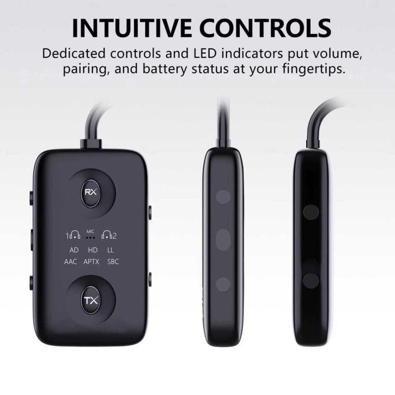 - Adaptador Bluetooth 5.4 de modo dual que funciona como transmisor (TX) y receptor (RX)
