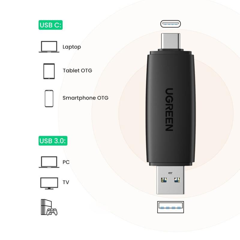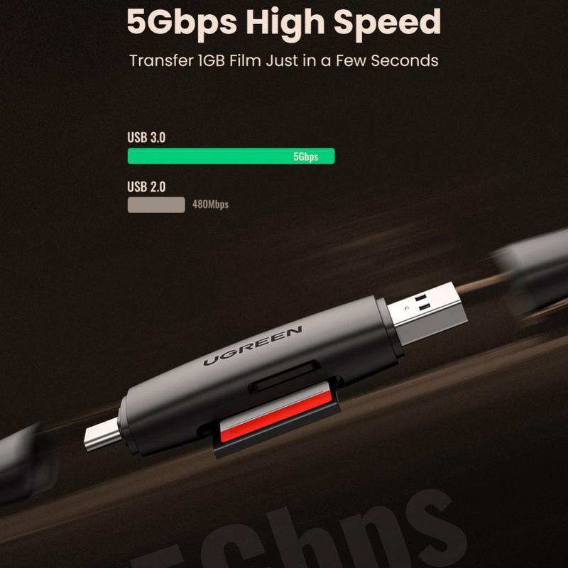 Lector de tarjetas microSD SD USB-C y USB-A Ugreen 5 Gbps - Adaptador OTG 2 en 1 con doble ranura