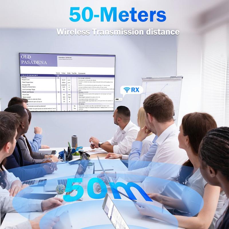 El sistema admite transmisión de vídeo de hasta 1080P, lo que garantiza una calidad de imagen nítida y un rendimiento fiable para pantallas, proyectores y monitores. Es ideal para presentaciones profesionales, reproducción de vídeo y screen mirroring.