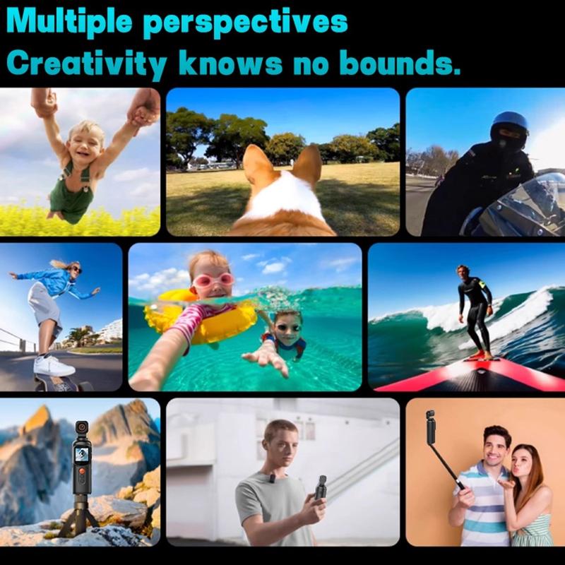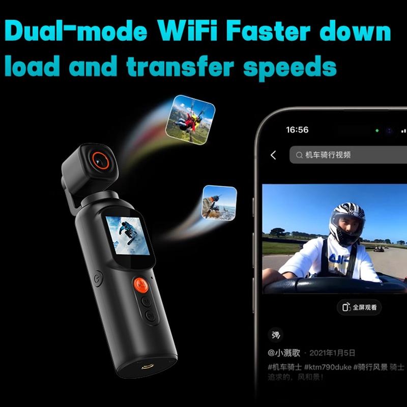 • LK2316 Cámara de acción 4K Ultra HD portátil - Grabadora inalámbrica de mano con estabilización cardán giratoria, visión nocturna y resistencia al agua IP65