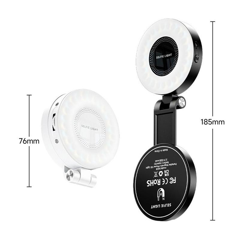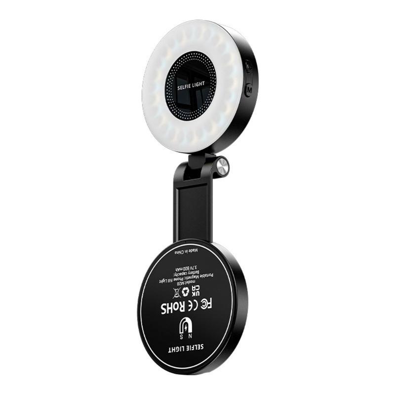 Luz de relleno LED de bolsillo magnética M28 - Lámpara selfie de 3 colores y temperatura con espejo, de mano y portátil