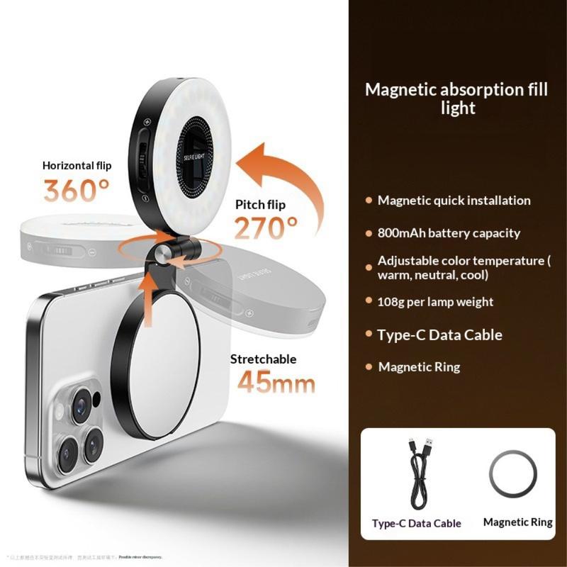 La luz de relleno LED magnética de bolsillo M28 es una herramienta de iluminación compacta y portátil diseñada para creadores, fotógrafos y cualquiera que desee una iluminación perfecta sobre la marcha. Su sistema LED integrado admite tres temperaturas de color ajustables, lo que permite ajustar la iluminación para obtener tonos cálidos, neutros o fríos en función de la escena. El espejo de alta definición integrado facilita la previsualización de la mirada o el ángulo de disparo en tiempo real, mientras que el accesorio magnético permite un montaje sin esfuerzo en smartphones y otras superficies metálicas. Con un diseño ligero de 108 g y batería recargable, esta luz de relleno es ideal para selfies, retransmisiones en directo, tomas en exteriores y creación de contenidos para viajes.