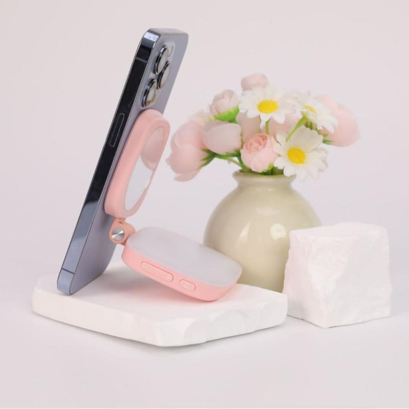 Consigue una iluminación perfecta en cualquier momento con esta luz de relleno LED magnética 2 en 1 para selfies, diseñada para smartphones y fotografía sobre la marcha. Las perlas LED de alta calidad proporcionan una iluminación suave y uniforme que mejora los selfies, retratos y videollamadas en entornos con poca luz. Gracias a su sujeción magnética inteligente, la lámpara se fija de forma segura al dispositivo para utilizarla con las manos libres, mientras que el espejo de maquillaje integrado permite hacer retoques rápidos antes de grabar o disparar. Con una batería recargable integrada y un diseño compacto de 149 g, este accesorio de iluminación portátil es ideal para viajes, vlogging, livestreaming y fotografía móvil cotidiana.