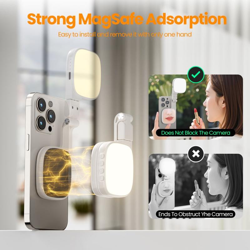 Mejora tus fotos, videollamadas y transmisiones en directo con la luz de relleno LED magnética XJ105, una herramienta de iluminación ultraportátil diseñada para creadores, viajeros y cualquiera que desee una luz favorecedora cuando lo necesite. Su potente fijación magnética te permite acoplarla con una sola mano sin bloquear las cámaras del teléfono, y si tu teléfono no es magnético, el anillo magnético incluido lo soluciona en segundos. Con 48 LED (cálidos + fríos), 3 modos de temperatura de color y 10 niveles de brillo, puedes seleccionar rápidamente el aspecto adecuado: suave y cálido para contenidos nocturnos, neutro para reuniones o frío y nítido para tomas detalladas. Añádele el diseño plegable y la rotación multiángulo, y la XJ105 se convierte en tu luz de estudio compacta que cabe en un bolsillo.