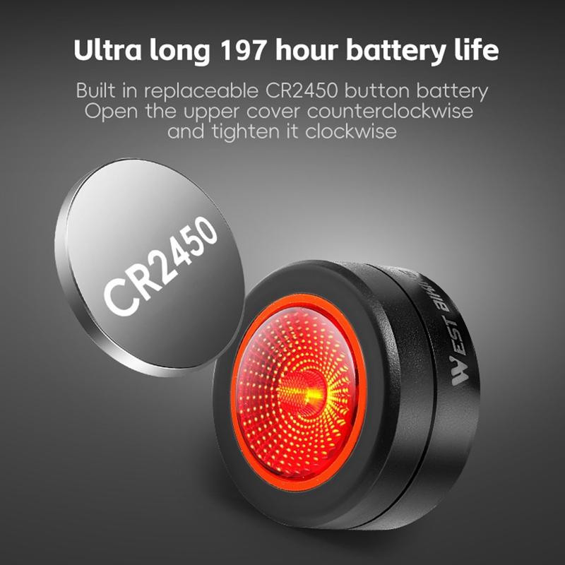 Aumente su visibilidad y pedalee con confianza utilizando la luz trasera inteligente para bicicleta WEST BIKING con sensor magnético de frenado. Diseñada para montarse en el arco del sillín, esta compacta luz trasera cuenta con detección inteligente de movimiento y sensor automático de frenado para alertar al tráfico que viene detrás. Alimentada por una pila CR2450 reemplazable, ofrece hasta 197 horas de funcionamiento, lo que la convierte en una mejora de seguridad fiable para los desplazamientos diarios y el ciclismo nocturno.