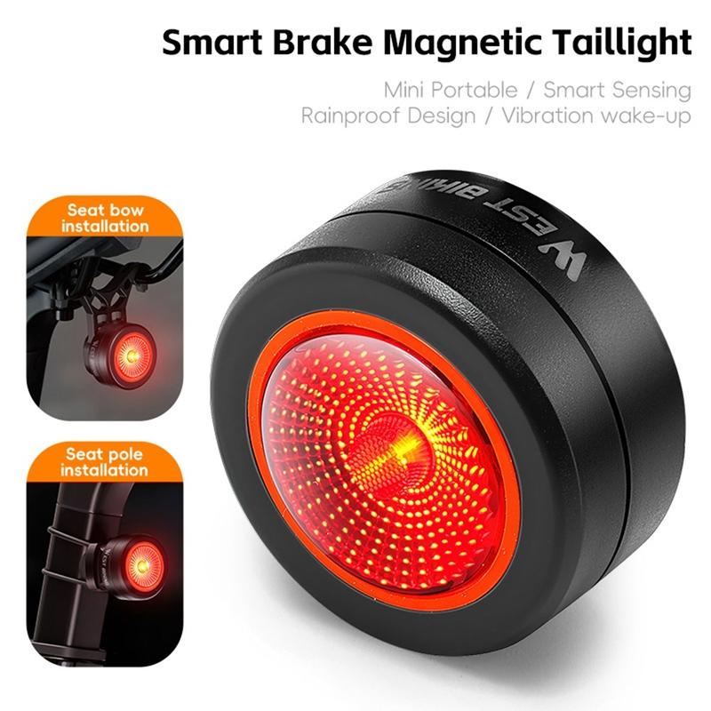 - Luz trasera magnética inteligente con sensor de frenado para bicicleta WEST BIKING