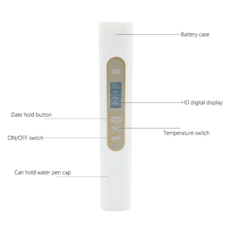 - Modo de medición dual - muestra TDS y temperatura (0-99°C)
