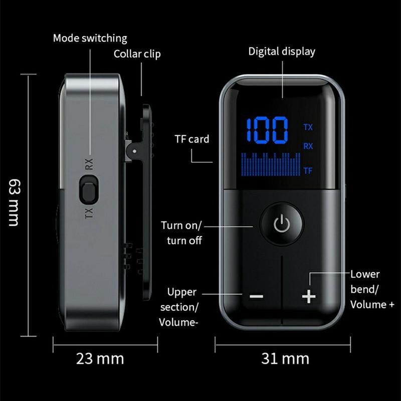 • M20 Receptor / Transmisor inalámbrico Bluetooth 5.4 con AUX de 3.5mm - Adaptador de pinza de solapa con reproducción de tarjeta TF para audio en el coche y en casa