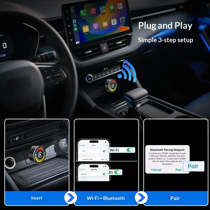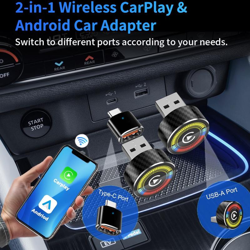 - Convierte CarPlay y Android Auto por cable a funcionamiento inalámbrico.