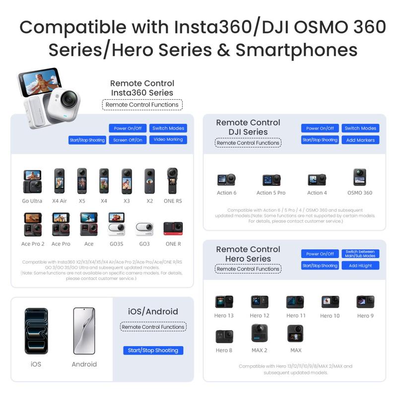 - Amplia compatibilidad: funciona con smartphones iOS y Android, y es compatible con las cámaras de acción Insta360, GoPro Hero y DJI.