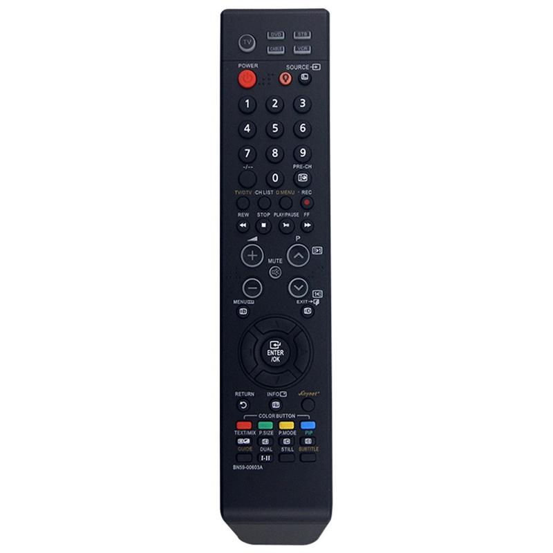 Reemplace rápidamente el mando a distancia perdido o dañado de su televisor Samsung con este mando a distancia infrarrojo universal equivalente al BN59-00603A. Diseñado para un control diario fiable, le ofrece una disposición familiar de botones con teclado numérico, teclas de navegación, controles multimedia y botones de función de color (rojo/verde/amarillo/azul) para acceder fácilmente a las funciones habituales del televisor. Es un sustituto práctico y sencillo que mantiene el control del televisor sin complicaciones y sin necesidad de configuraciones complicadas.
