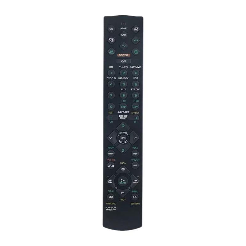 Controle fácilmente su receptor AV Yamaha desde cualquier punto de la habitación con este mando a distancia por infrarrojos equivalente al RAV205. Diseñado como un práctico sustituto de un mando antiguo o dañado, le ofrece una disposición completa de botones para controlar el volumen, cambiar de entrada y navegar por las funciones AV principales. Con botones dedicados para entradas comunes como CD, DVD/LD, SAT/D-TV, VCR, TV, AMP, TUNER, TAPE/MD y AUX, es ideal para sistemas de cine en casa y equipos de alta fidelidad en los que se utilizan varios dispositivos.