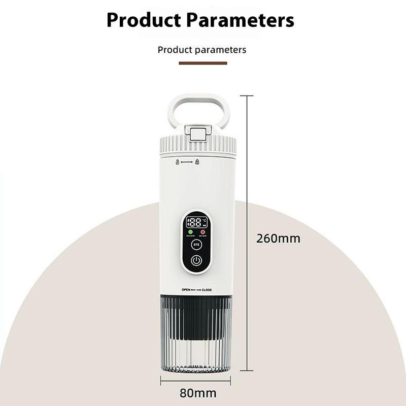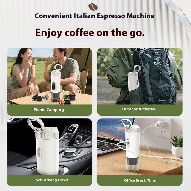 Disfrute de un café con calidad de barista en cualquier lugar con la cafetera espresso portátil, una cafetera compacta e inalámbrica diseñada para viajes, aventuras al aire libre y uso diario. Con dos modos de funcionamiento, permite la extracción a temperatura ambiente para obtener ricos sabores de café y la extracción con calor para un espresso rápido y caliente a demanda. Con una batería recargable de 7500mAh, esta cafetera ofrece 4-5 usos en modo caliente o más de 200 usos en modo a temperatura ambiente con una sola carga. Construida con ABS duradero y acero inoxidable 304, resiste el uso frecuente a la vez que ofrece hasta 21 bares de presión para una extracción de calidad profesional. Compacta, ligera y recargable por USB, es la compañera de café perfecta para el hogar, la oficina, los viajes por carretera o las actividades al aire libre.