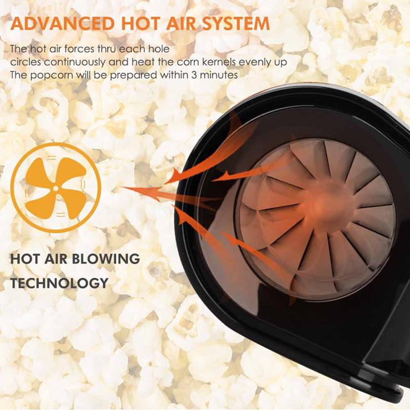 - Avanzado sistema de aire caliente para cocinar palomitas rápidamente y sin aceite