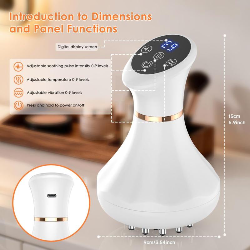 Mejora tu rutina de cuidado personal con este masajeador eléctrico inalámbrico, un versátil dispositivo de mano diseñado para combinar múltiples funciones de cuidado corporal en una solución compacta. Con masaje por bio-pulsos, terapia de calor ajustable, terapia de luz y función de vibración, está pensado para usuarios que buscan una forma más cómoda de disfrutar de la relajación diaria, un alivio localizado y un cuidado específico de la piel, tanto en casa como fuera de ella.