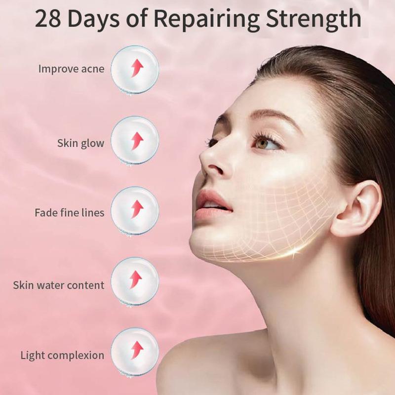 - Iluminación de la piel: La luz verde y blanca unifica el tono y mejora la luminosidad.