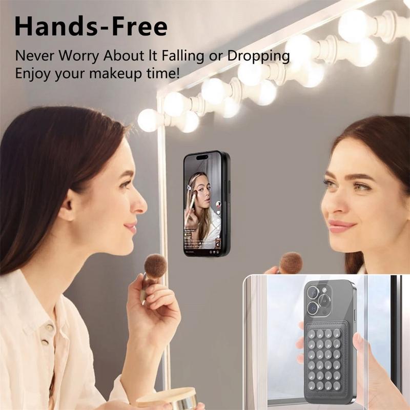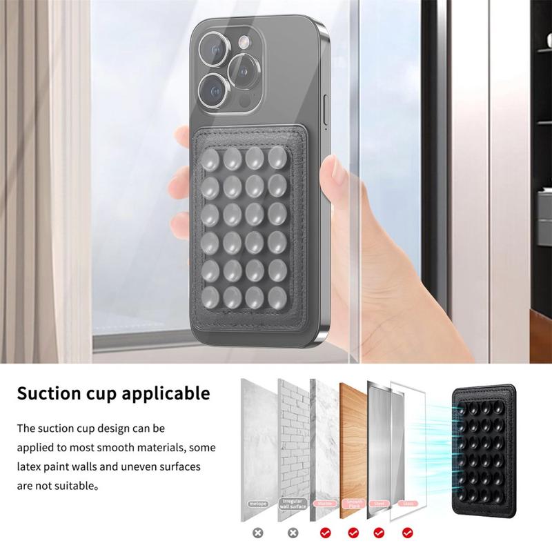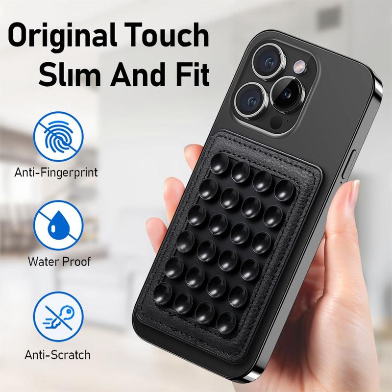 - Combinar la fuerza magnética con la succión aumenta la estabilidad al distribuir el peso de forma más uniforme por la parte posterior del teléfono.