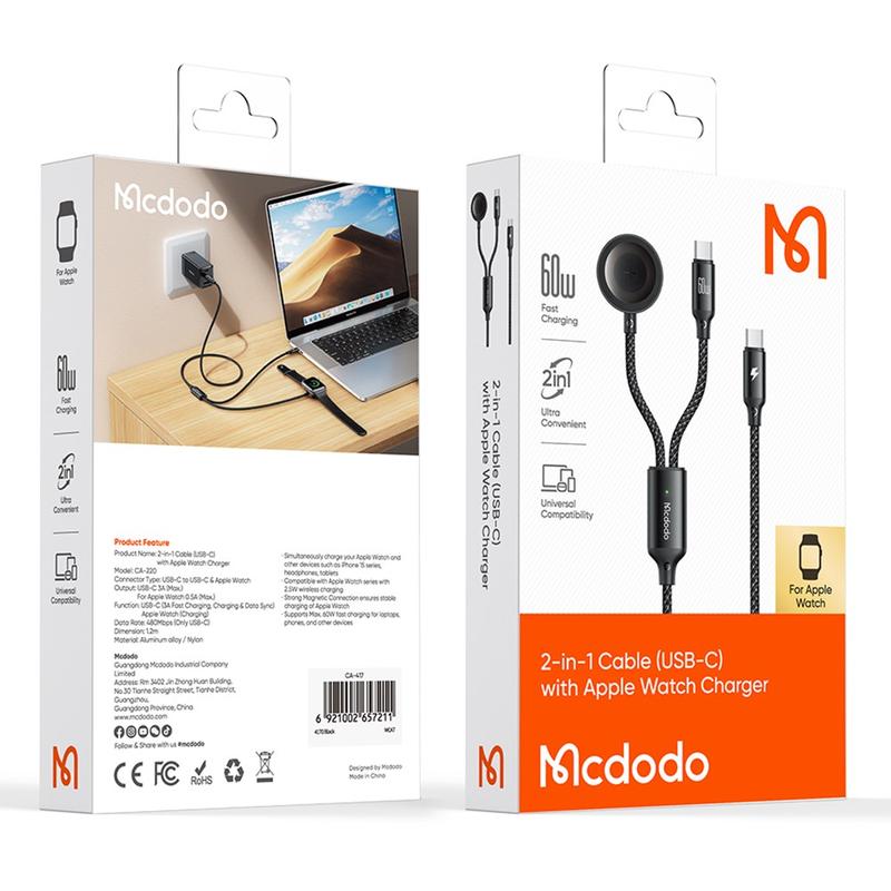 Mcdodo CA-2200 Cable de carga USB-C con cargador Apple Watch - 1.2m/60W