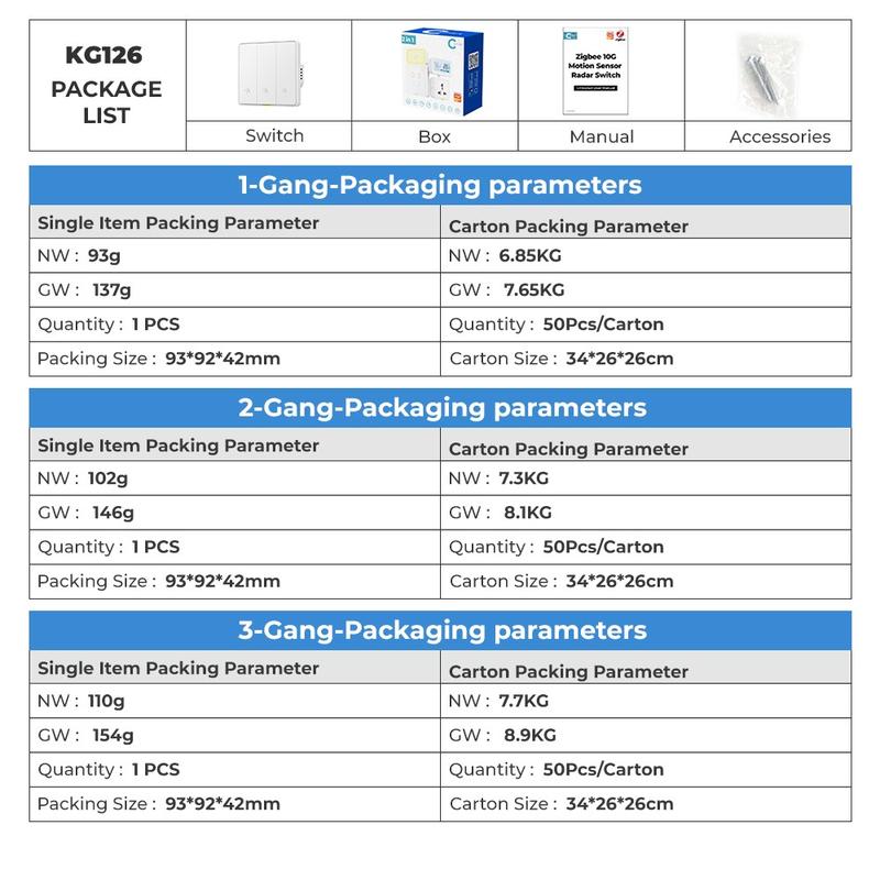 Revolucione la gestión de la iluminación de su hogar con el interruptor inteligente con radar Zigbee MG-KG126. Con conmutación de 2 vías y 1 vía, este interruptor de pared inteligente ofrece detección automática de movimiento, control remoto mediante aplicación y programación flexible a través de la plataforma Tuya. Disfrute de la comodidad de tener las manos libres, ya que el sensor de radar integrado detecta la presencia humana y garantiza que las luces se enciendan o apaguen sin esfuerzo, ahorrando tiempo y energía.