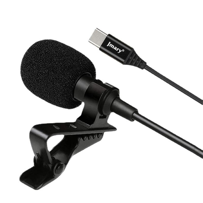 • Micrófono con cable Jmary MC-R2 USB-C Lavalier de 2 m / Micrófono de condensador omnidireccional para entrevistas con clip y espuma antiviento