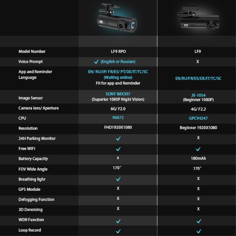• Mini cámara para coche LF9 Pro 1080p: cámara de salpicadero con WiFi, sensor Sony, visión nocturna y control por voz
