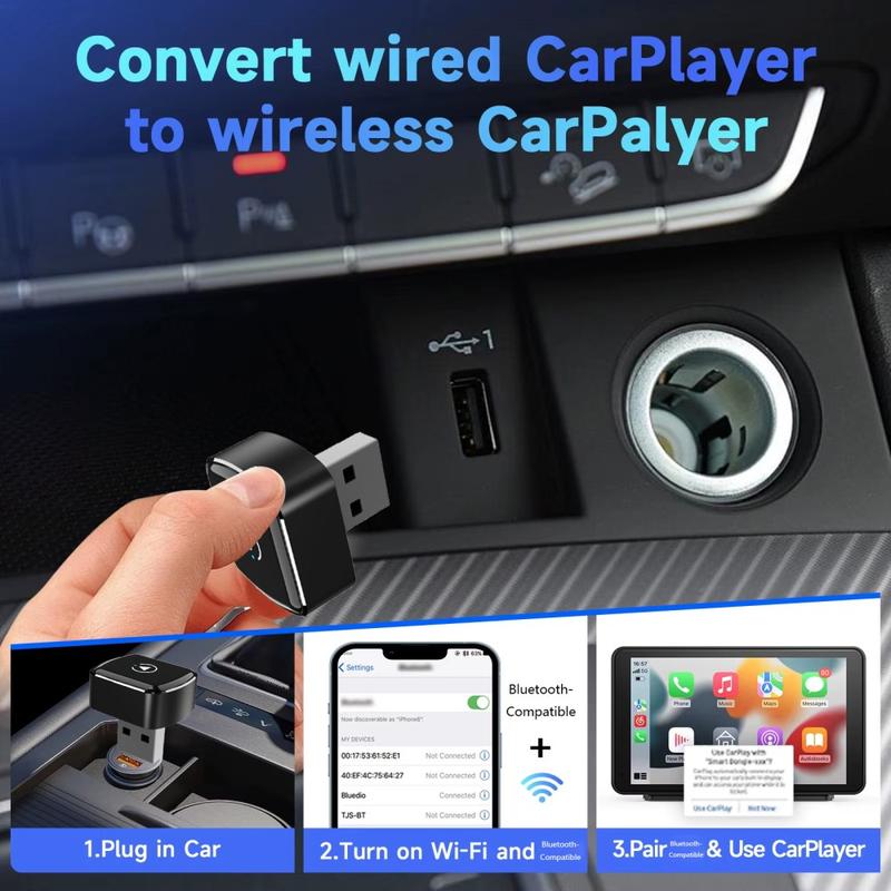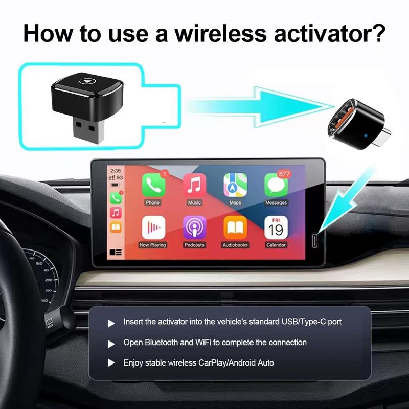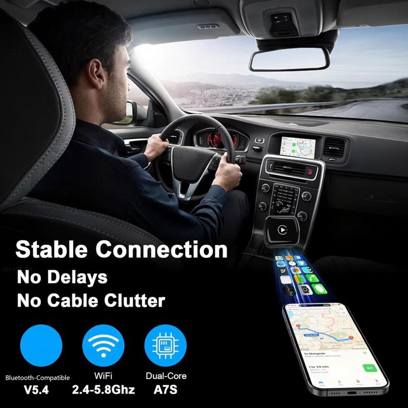 - Función: Convierte CarPlay/Android Auto por cable en inalámbrico.
