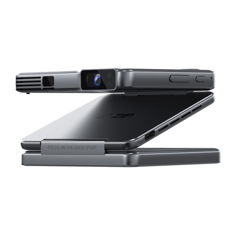 Mini proyector portátil plegable Aurzen ZIP: DLP 720p, 100 lúmenes ANSI, batería de 5000 mAh, pantalla completa vertical, duplicación instantánea