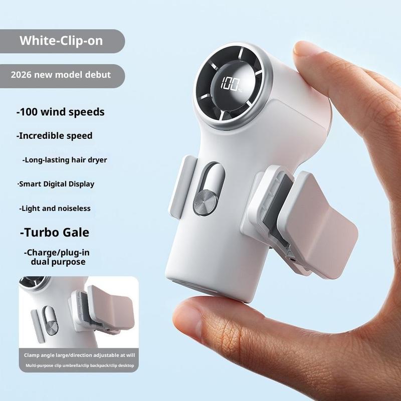 Mini ventilador de mano con clip YS-G10: ventilador recargable con batería de 3000 mAh, pantalla digital y 100 niveles de velocidad
