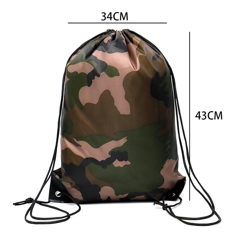 La mochila de camuflaje con cordón es una solución de almacenamiento duradera y ligera para estilos de vida activos. Fabricada en poliéster 210D con esquinas reforzadas con cuero PU, está diseñada para resistir el uso diario y mantener tus pertenencias seguras. Con un espacioso compartimento principal y un sencillo cierre de cordón, esta versátil mochila es ideal para el gimnasio, los deportes, los viajes, el camping o el uso diario.