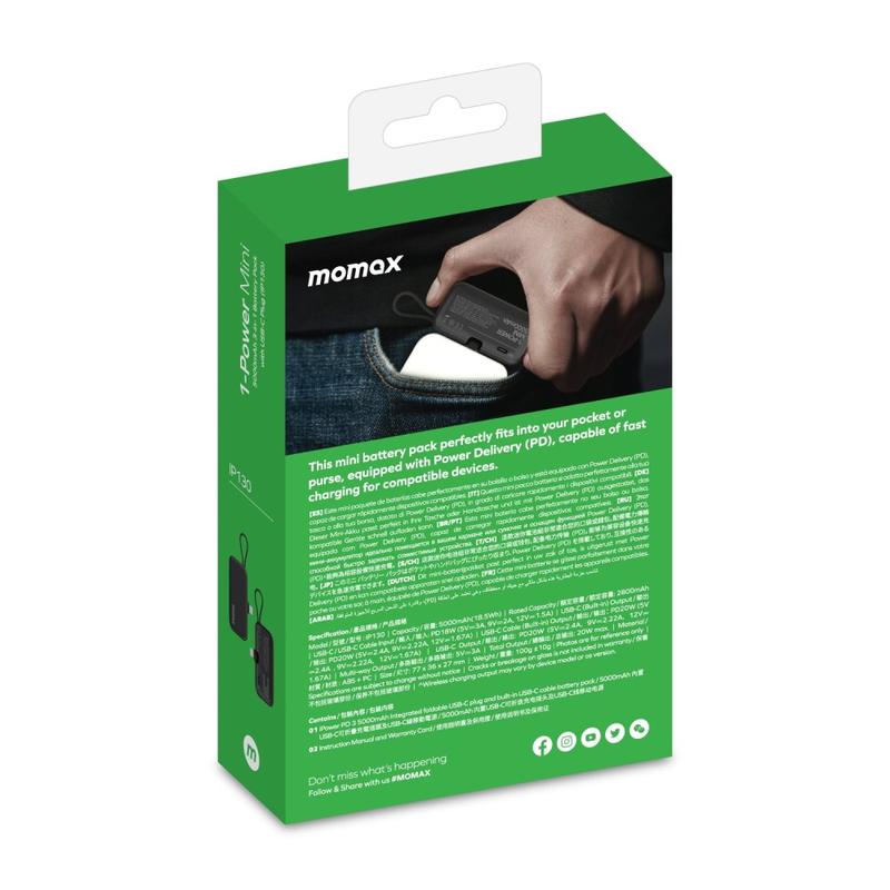 Aporta creatividad y comodidad a tu rutina de carga sobre la marcha con el cargador portátil MOMAX 1 Power Mini Pop Art. Con una capacidad de 5000 mAh, cable USB-C integrado y carga rápida de 20 W, este cargador compacto suministra energía rápida y fiable a varios dispositivos, ayudándote a mantenerte conectado en cualquier momento y lugar.