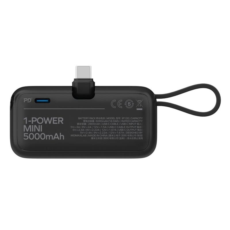 Momax 1-Power Mini Pop Art 5000mAh Power Bank / Cargador portátil con enchufe USB-C, cable USB-C, puerto USB-C - 20W