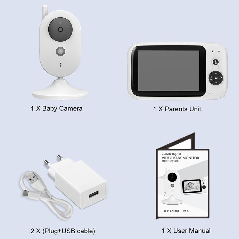 ZR303B: vigilabebés con pantalla LCD de 3,2 pulgadas, FHSS de 2,4 GHz, audio bidireccional, visión nocturna y alerta de temperatura