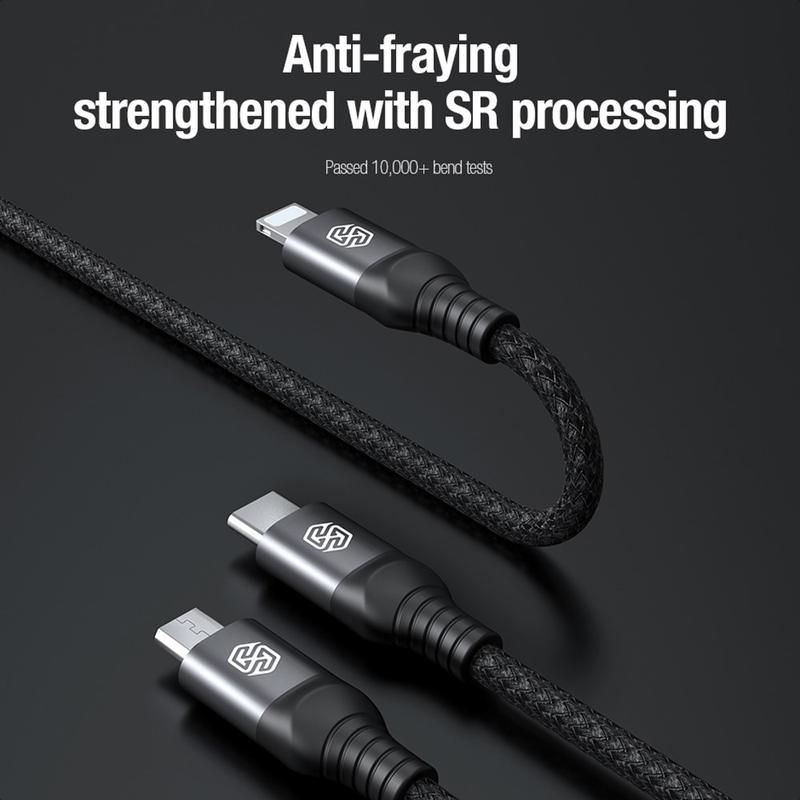 NILLKIN Swift Pro Cable 3-en-1 USB trenzado de nylon a Type-C / iP / Micro Cable de carga - Azul