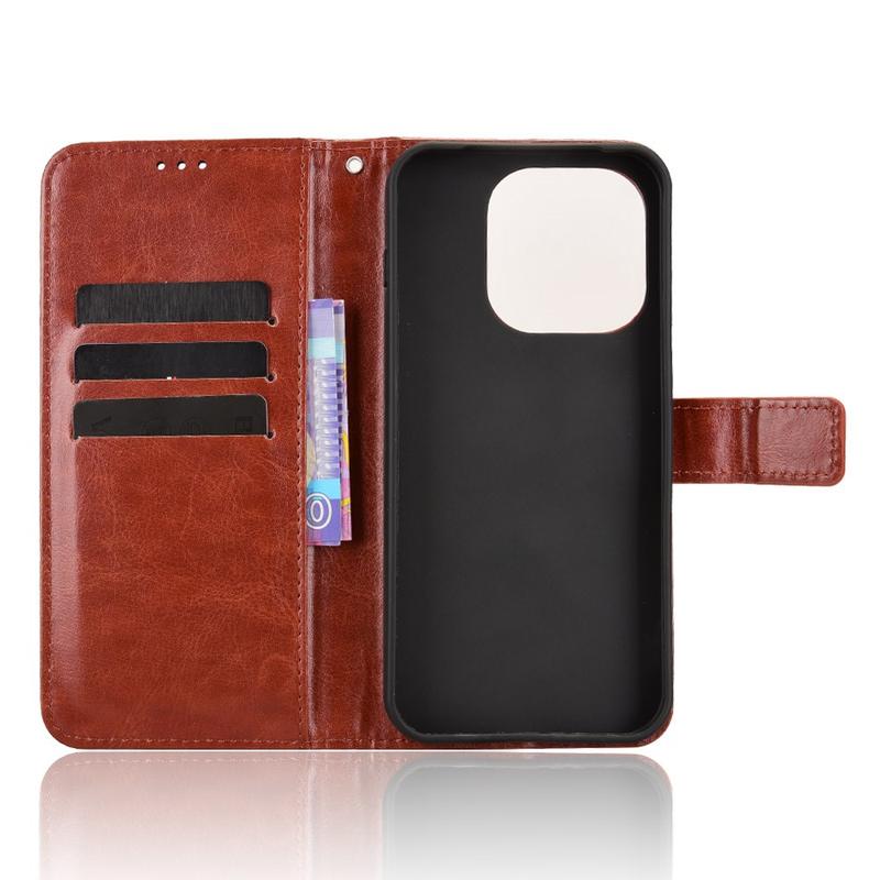 El nombre "Crazy Horse" proviene de la guarnicionería ecuestre tradicional; la superficie texturizada está tratada con ceras que crean un efecto de dos tonos, imitando el cuero de grano completo, sin dejar de ser respetuoso con los animales, más ligero y más resistente a los arañazos. Por eso es ideal para los accesorios de uso diario del teléfono, donde la durabilidad y el estilo son importantes.
